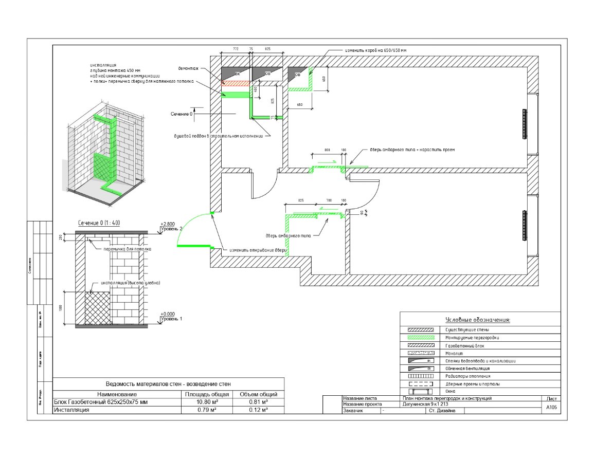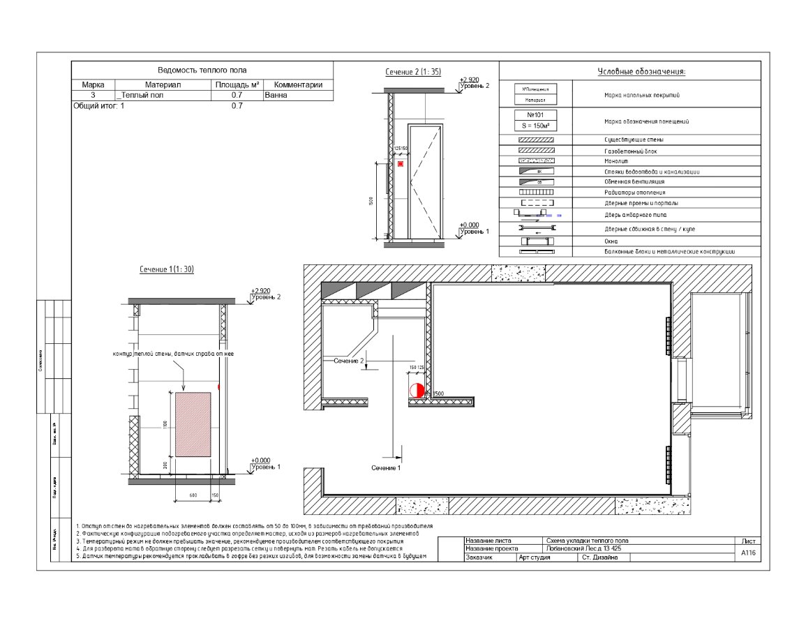 - Планировочные решения: указывается оптимальное расположение комнат (гостиной, гардеробной, жилых помещений, кухни), мебели и других элементов интерьера. Это включает в себя планы размещения стен, дверей, окон, инженерные и сантехнические решения.
