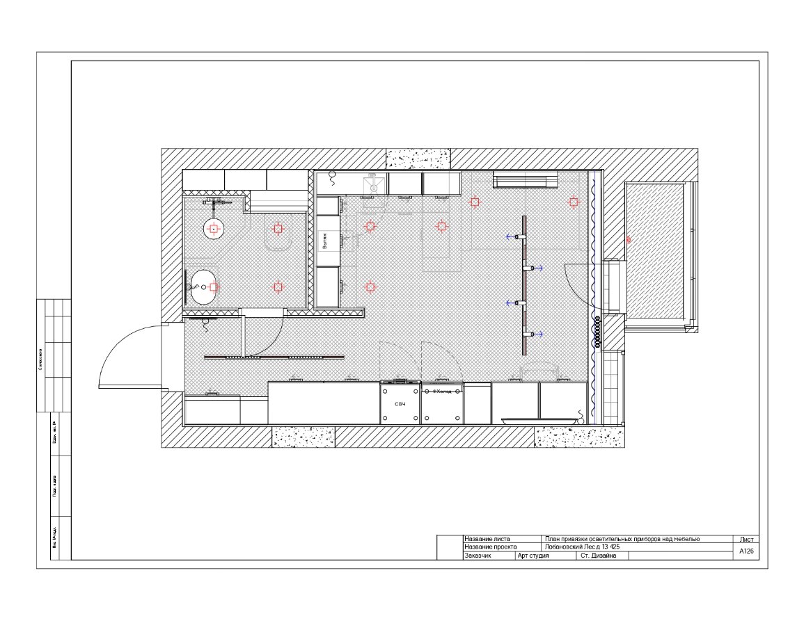 - Освещение: Указывается план освещения, включая выбор типов осветительных приборов, их расположение и интенсивность освещения в разных зонах. Поможем согласовать покупку товаров в поставщиком.
